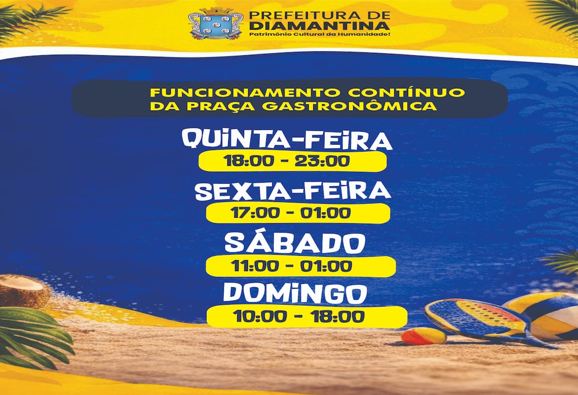 17h00 – 01h00: Praça gastronômica em funcionamento